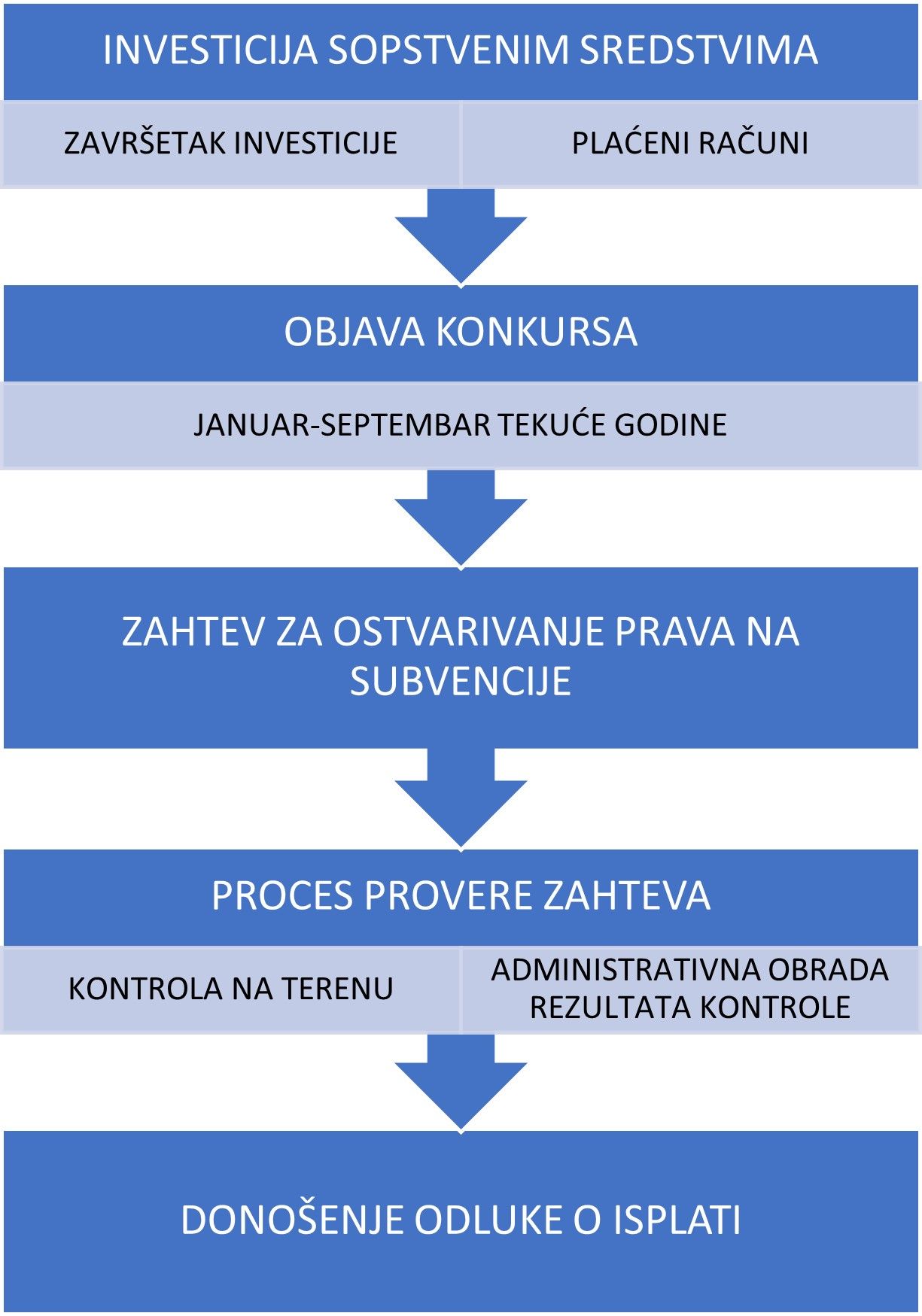 INVESTICIJE: koje su u potpunosti realizovane u periodu od 1. januara tekuće kalendarske godine u kojoj se podnosi zahtev, a najkasnije do dana podnošenja zahteva za ostvarivanje prava na podsticaje